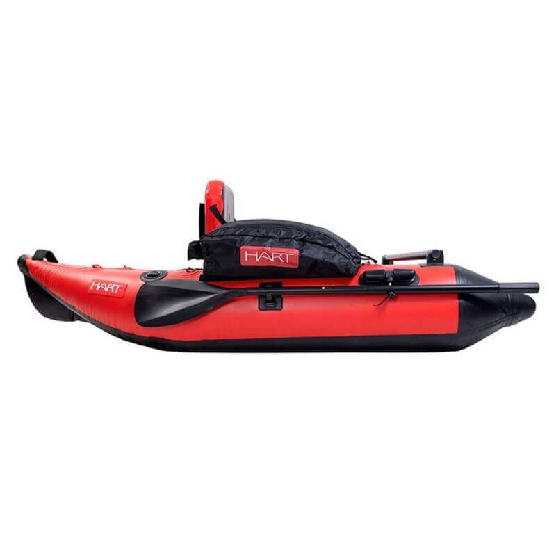 Float tube of the brand Hart model Sikkario V-Sail in color red and blackspecial for Black-Bass and predator fishing. The Float tube perfect for those who want a Float tube small size combined with the comfort of the oars to move over long distances.