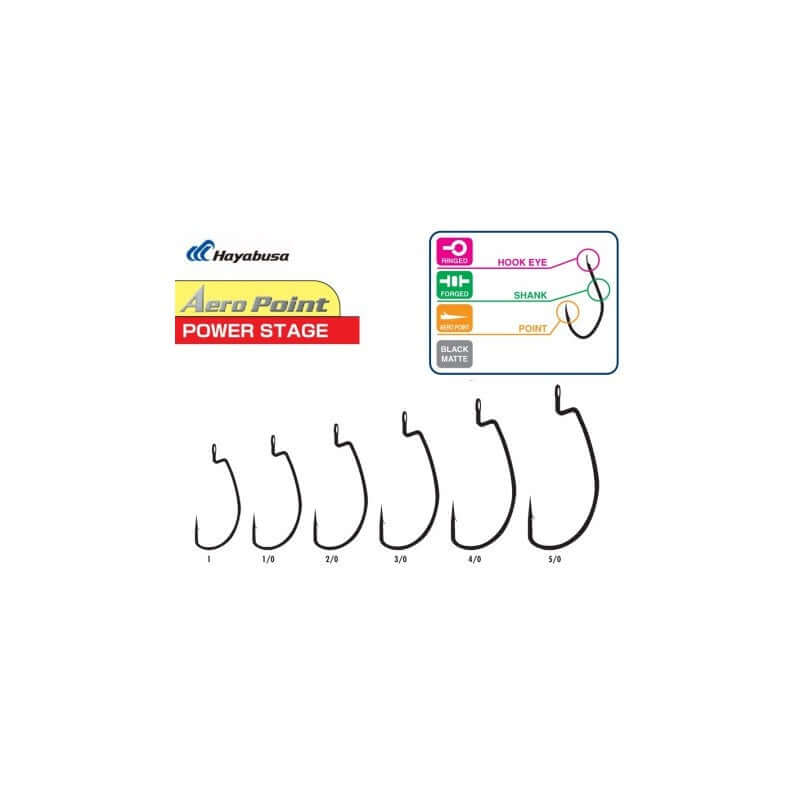 Hooks of the brand Hayabusa model Power Stage in color matte black. These hooks are made of forged steel, with a special Aero Point sharpening, which is able to easily nail catches and show resistance. Available in 1/0, 2/0, 3/0, 4/0 and 5/0.