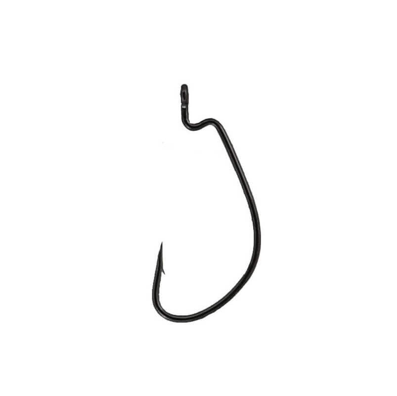 Hooks of the brand Owner model BC 5140 in color black, special for bass fishing. It has a super sharp tip and curved body.