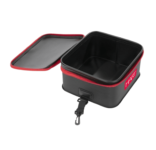 Semi-rigid bag of the brand Hart in black and red color, special for bass and predator fishing.
