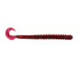 Vinilo de la marca Zoom modelo Dead Ringer en color rojo con pintas negras y verdes con forma de gusano de cuerpo anillado y cola rizada de 100 milímetros, especial para la pesca de bass y depredadores.