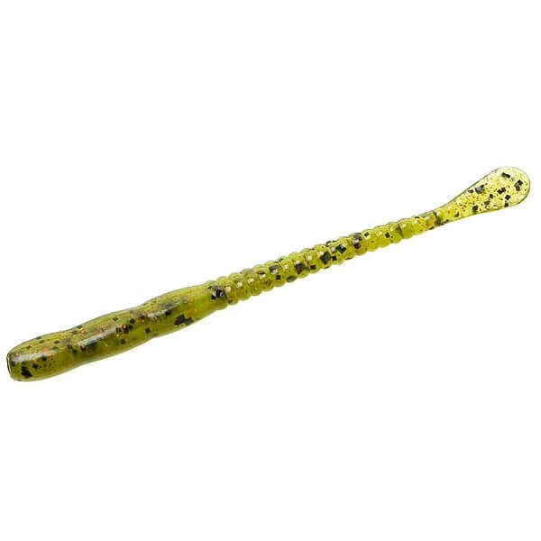 Soft Lure fine from 100 millimeters of the brand Zoom model Meathead, color green with black and red stripes, special for bass and predator fishing. It is impregnated with salt.