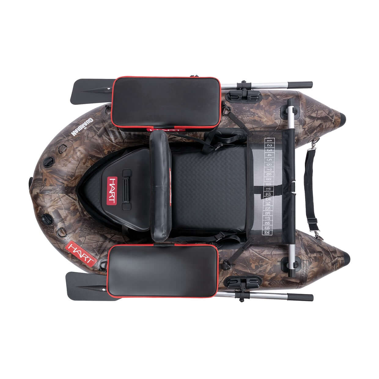 Float tube of the brand Hart, model Guardian Centinel, in color camo, special for Black-Bass and predators fishing.