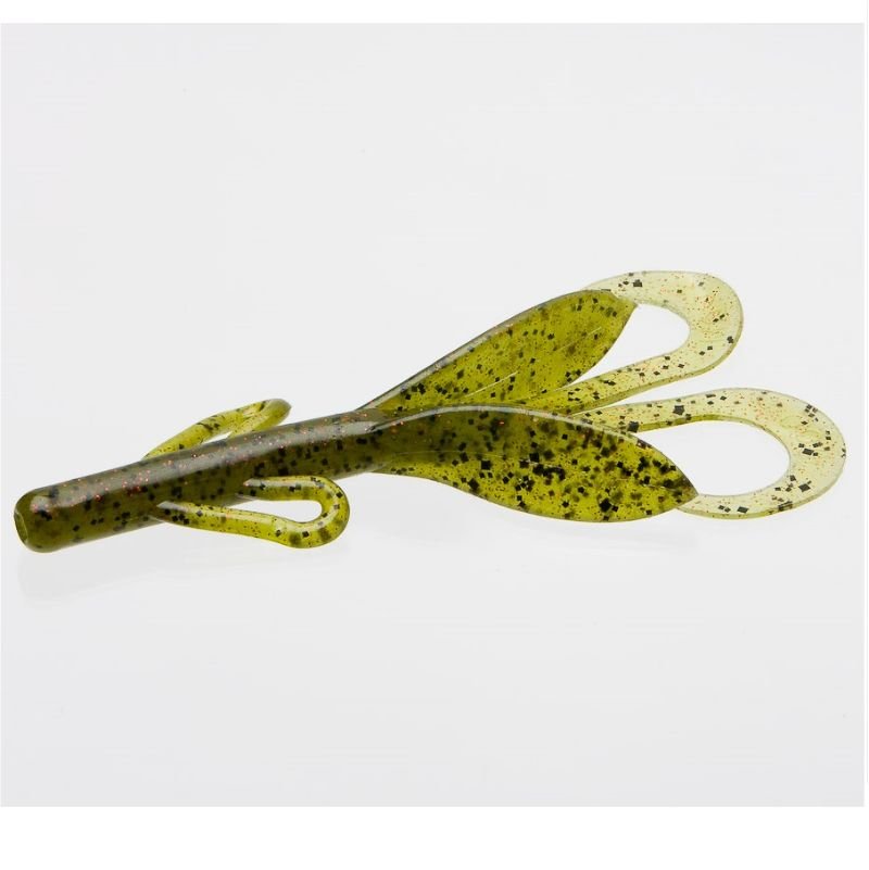 Soft Lure robust body with multiple appendages from 180 millimeters of the brand Zoom Brush Hogs model color green with black spots. It is impregnated with salt.
