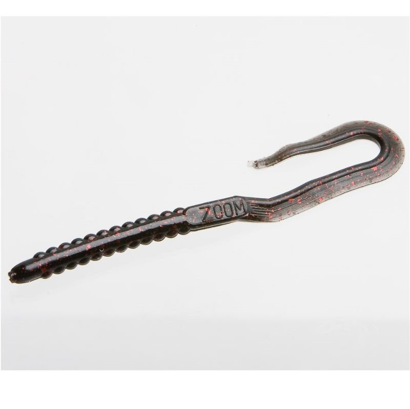 Soft Lure worm-shaped from 170 millimeters of the brand Zoom model U-Tale color black with red gloss. It is a medium-sized worm with a solid body and a wavy U-shaped tail. It is impregnated with salt.